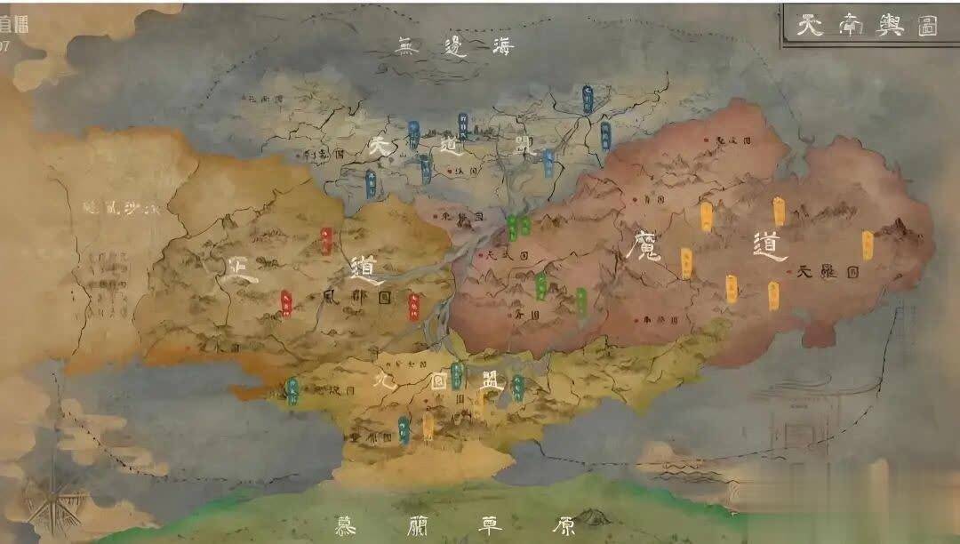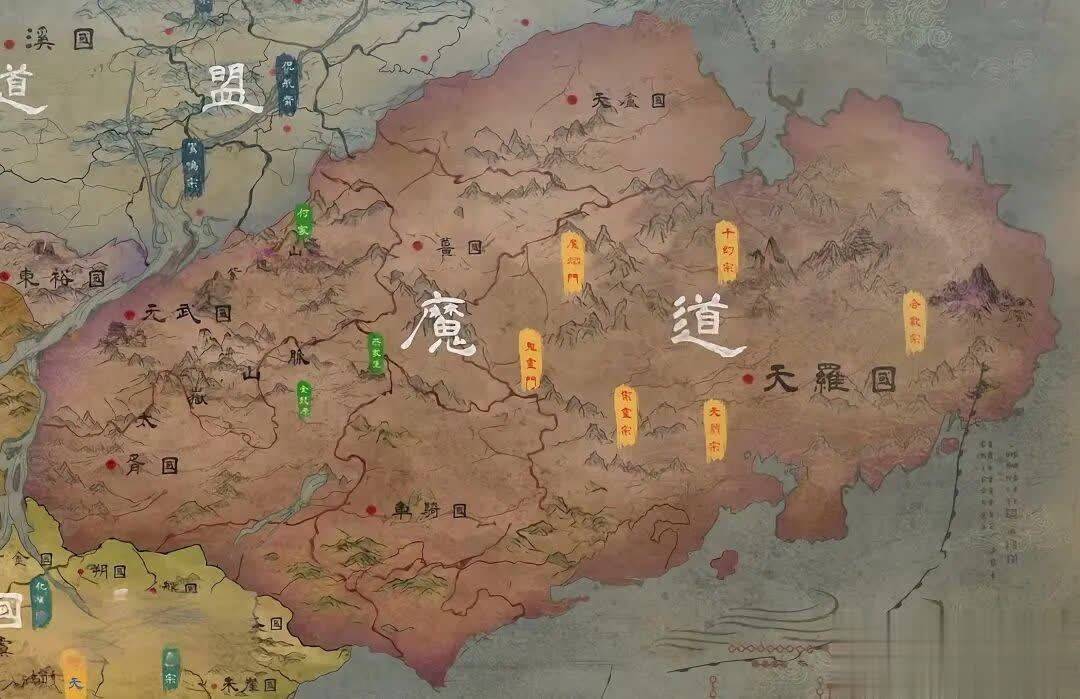 3、天罗国:越国东部,天南大国,与越国之间隔着姜国和车骑国两个小国,是魔道六宗的老巢。