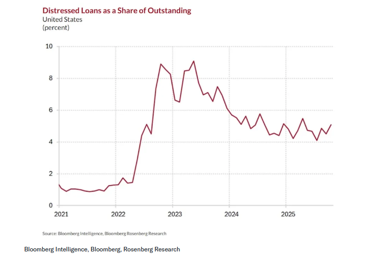 该公司指出,“现在可能要自食其果了。出于许多同样的原因,家庭感到压力,企业不得不应对借贷成本上升、(人工智能以外的)需求放缓以及总体不确定性上升的问题,”该研究公司写道,并指出近年来私人贷款的繁荣。